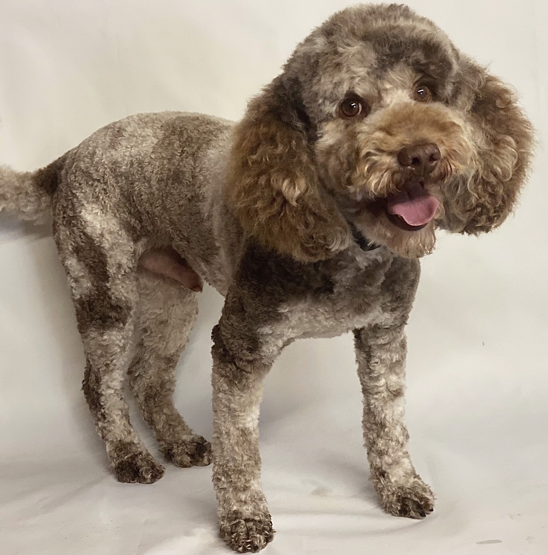 We feel extremely lucky and proud to present our very special boy 'Paddington bear' at stud. At home we call him 'Bear' for short. He is an extremely rare Chocolate Merle Miniature Poodle Stud dog. One of only a hand full in the country at the moment. He is proven and a natural, keen stud dog who knows his job. This merle colour is highly sought after, particularly in cross breed puppies e.g. cockapoos, Labradoodles etc. This colour is rare, new and very different, making it in high demand and there are very few litters around at the moment containing merle pups. is a stunning example of a chocolate merle Miniature Poodle his markings are fantastic and should pass to his offspring. He stands at 14 inches to the shoulder.